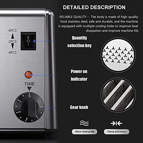 【Bak gelijkmatig en veilig】De 6 Slice Broodrooster, extern gebruik van hoogwaardig duurzaam roestvrij staal materiaal, kan zorgen voor een lange tijd hoge temperatuur bakken, slijtvastheid, hoge temperatuur verwarming vervormt niet.