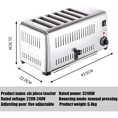 Specification: 6 Slice Commerciële Broodrooster, 3240W Geborsteld Roestvrij staal Broodrooster Extra Brede Sleuven Broodrooster…