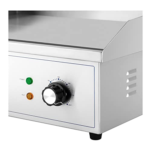 De volautomatische thermostaat garandeert dat de temperatuur constant wordt gehouden. Dankzij het krachtige verwarmingselement dat met 3.000 W werkt, bereikt de elektrische grillplaat zeer snel de bedrijfstemperatuur tussen 50 en 300 °C, die via een handige draaiknop kan worden ingesteld.
