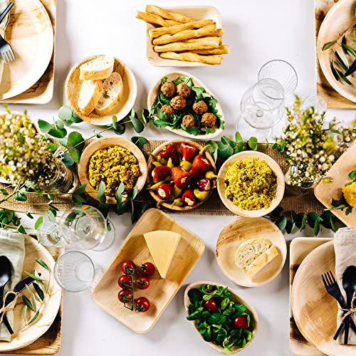 Het palmblad servies bestaat uitsluitend uit regeneratieve hulpbronnen zonder chemische toevoegingen of coating. Omdat het palmblad wegwerpservies uit het hele blad van de arecapalm wordt geperst, is de natuurlijke nerf van het blad bij elk biologisch bord individueel. De hoogwaardige afwerking in combinatie met de unieke look en de stabiliteit maakt het palmservies tot een absolute hit, of het nu als fingerfood servies, campingborden, dinerborden, voorgerechten, feestborden, barbecue-borden en nog veel meer is. Het elegante wegwerpservies kan prachtig worden gecombineerd met natuurlijke tafeldecoratie op privéfeesten en op grote evenementen.